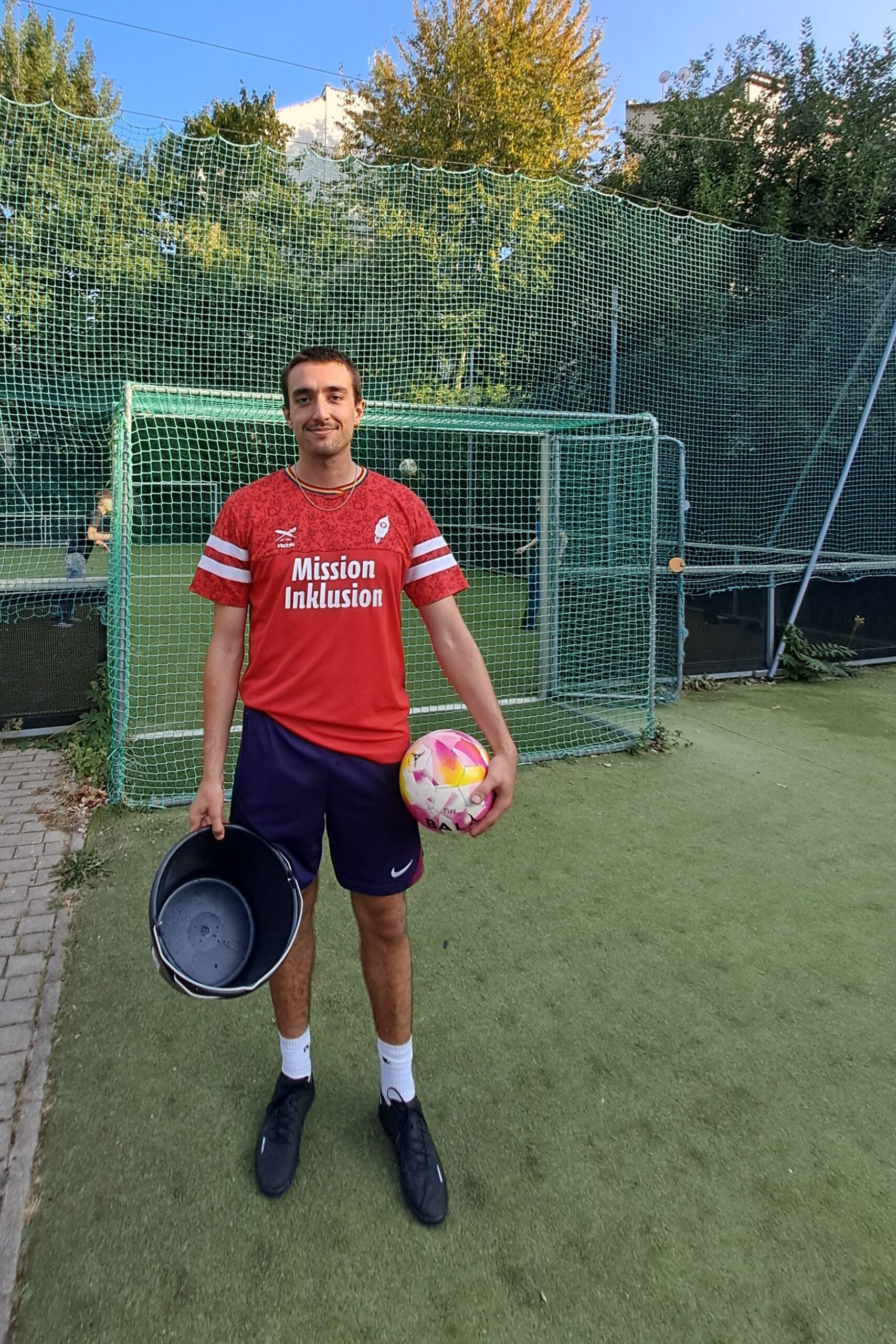 Julian Marcell trainiert die Fußballmannschaft seit drei Jahren mit großem Engagement ehrenamtlich. Sein Einstieg erfolgte durch einen Freund, und seitdem ist er begeistert dabei. „Es macht mir einfach Freude, selbst Fußball zu spielen und mein Wissen weiterzugeben“, erzählt Julian. Der Respekt und das gegenseitige Verständnis, das zwischen den Spielern herrscht, sind für ihn besonders wertvoll. Die Herausforderung, eine so diverse Mannschaft zu trainieren und sicherzustellen, dass jeder individuell gefördert wird, nimmt Julian gerne an. „Wir spielen oft selbst mit und versuchen bewusst, die Spieler einzubinden, die noch nicht so stark sind, indem wir sie gezielt anspielen“, erklärt Julian. Sein Ziel ist es, dass am Ende jeder Spieler mit Spaß und Freude vom Platz geht.